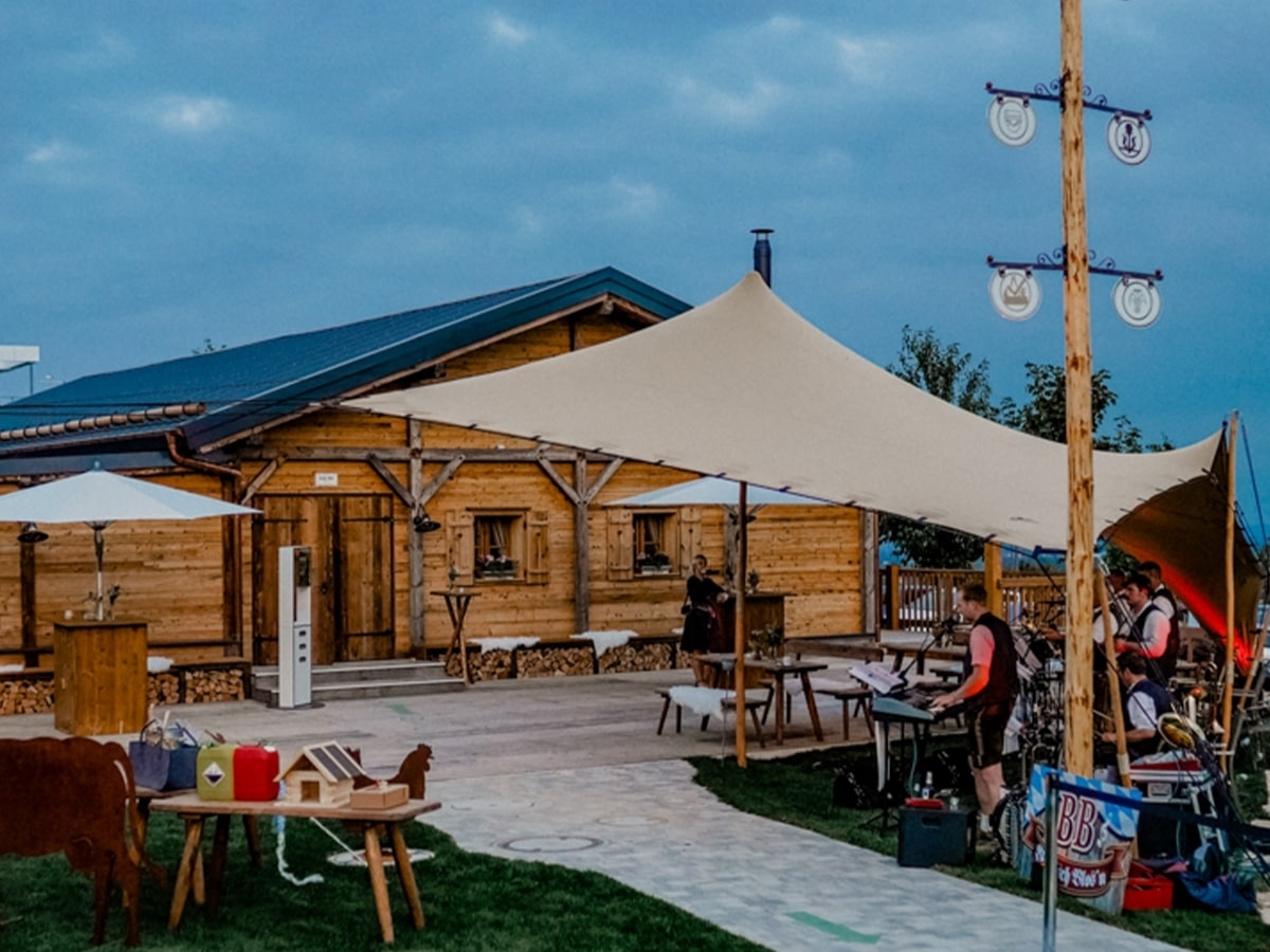 Direkt neben dem Hotel liegt die ACKER Alm – Deutschlands niedrigste Alm auf 434 m Höhe – und ein echtes kulinarisches Highlight. Als À-la-carte-Restaurant öffnet sie Montag bis Donnerstag ab 17:30 Uhr ihre Türen und serviert regionale Küche mit kreativen Akzenten – ausgezeichnet mit dem Qualitätssiegel „Ausgezeichnete Bayerische Küche“. Ob im gemütlichen Gastraum oder draußen im Biergarten mit Blick über das Donaumoos – hier trifft bayerische Herzlichkeit auf kulinarische Qualität. Am Wochenende wird die Alm zur exklusiven Eventlocation für Hochzeiten, Firmenfeiern oder private Anlässe – urig, charmant und unvergesslich.